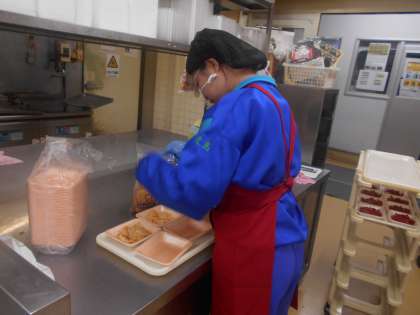 2年・14歳の挑戦・4日目・その26 公開日 2023/09/28 更新日 2023/09/28 2学年 9月28日(木) 14:00 「社会に学ぶ『14歳の挑戦』」の活動を紹介します。 「大阪屋ショップ 藤木店」での活動の様子です。 日替わりで、色々な部門を担当しています。惣菜部門では、パック詰め・割引シール貼り・掃除などをしていました。 他部門では、商品の品出しや割引シール貼りなどをしていました。 少し慣れてきて、手際よく作業をこなしていました。