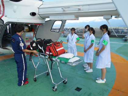 県内は15分で到着することができることやフライトドクターやフライトナースにはどのようにしたらなれるか等、たくさんのことを教えてもらうことができました。