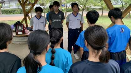 県中駅伝・その18 公開日 2023/09/30 更新日 2023/09/30 山室中学校のページ 9月30日(土) 16:00 閉会式が終わり、最後のミーティングです。 主将、副主将が、後輩に感謝のメッセージ、伝統の襷を受け渡すメッセージのあと、3年生が後輩に感謝のメッセージを伝えました。 7月の終わりに結成された駅伝部ですが、ここで一区切りです。 PS 3位に入賞した女子駅伝部は、北信越大会に出場します。