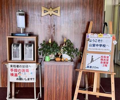 正面玄関をハロウィン仕様にリニューアル! 公開日 2023/10/01 更新日 2023/10/01 山室中学校のページ 10月1日(日) 13:30 10月に入ったので、正面玄関をハロウィン仕様に少し模様替えしてみました! (写真 下:来賓下足ロッカーの上)