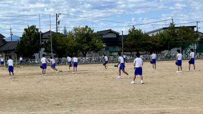 3年・体育・ソフトボール 公開日 2023/10/04 更新日 2023/10/04 3学年 10月4日(水) 1限 3年1,2組の男子体育は、グラウンドで、ソフトボールです。 ちょうどバッティングテストをしているところでした。