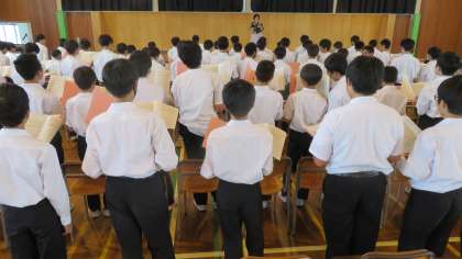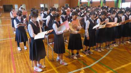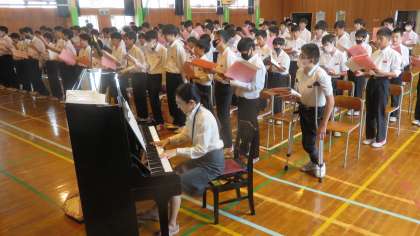 10月4日(水) 5限 1年生は、体育館で、「怪獣のバラード」の学年合唱練習を行いました。
