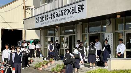 朝の登校風景 公開日 2023/10/06 更新日 2023/10/06 山室中学校のページ 10月6日(金) 7:55 気温は14度、天気はくもり。 涼しいと言うよりは、肌寒い朝です。 生徒が元気に登校してきました。(写真) 今週は、4日間だったので、ちょっと短く感じたかな?