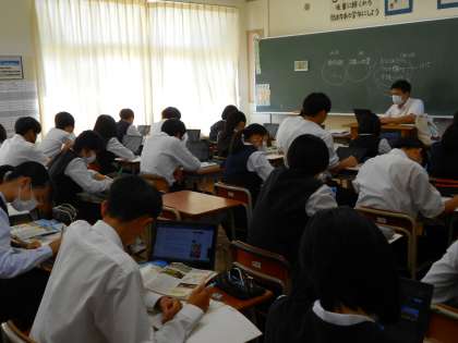 社会では、クロムブックを使って、黙々とまとめを行っています。