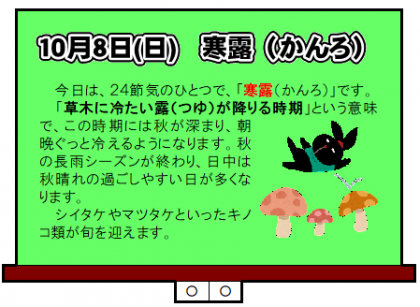 今日は、24節気の一つ「寒露(かんろ)」です。