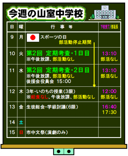 明日10日(火)から、「第2回 定期考査」が始まります。