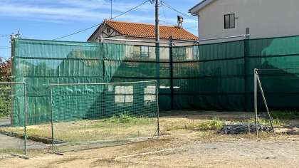東門近くに防砂ネットが完成しました。