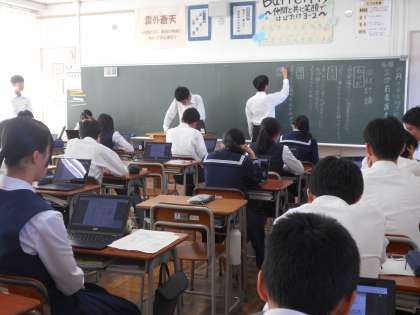 後期委員会の活動計画案を見ながら学級討議をしています。