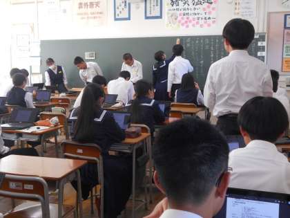 (写真 上:3年2組  中:3年3組  下:3年4組)