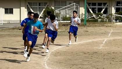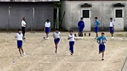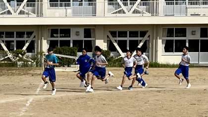 10月14日(土) 9:30 トラックでは、陸上競技部がガンガン走り込んでいます。