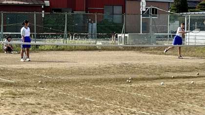女子ソフトテニス部が、2面とも使って、効率よく練習しています。