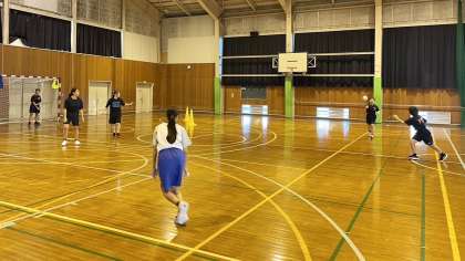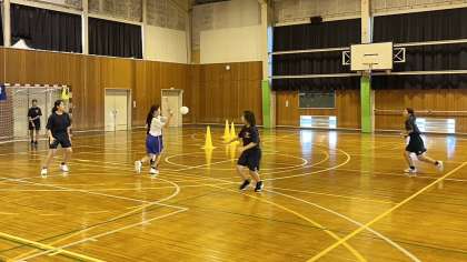 女子ハンドボール部は、一つ一つのプレーを確認しながら、基礎を徹底して練習しています。