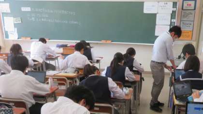 2年・授業風景 公開日 2023/10/16 更新日 2023/10/16 2学年 10月16日(月) 4限 10月第3週、今週は「学習の秋」「芸術の秋」でいきましょう! (写真 上:2年1組 理科「心臓のつくりとはたらき」) (写真 中:2年2組 社会「九州地方」) (写真 下:2年4,5組女子 保健「飲酒と健康」)