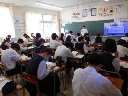 2年・授業風景・その1 公開日 2023/10/17 更新日 2023/10/17 2学年 10月17日(火) 5限 先生の話に耳を傾ける姿勢、集中してワークシートに取り組む姿勢、動画から情報を得ようとする姿勢……午後の授業を頑張る2年生です。 (写真 上:2年1組 技術「電源について」) (写真 中:2年2組 英語「Unit5 ユニバーサルデザイン」) (写真 下:2年3組 社会 「地形と気候にはどのような特徴があるのだろう」)