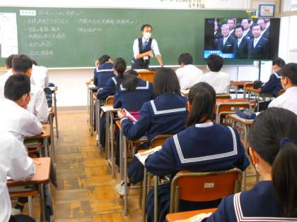 1組は、公民分野の授業で、意欲的に発言しています。