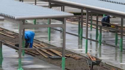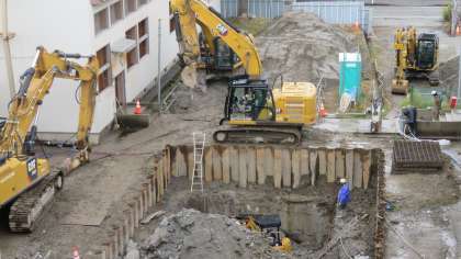 今日(10/21)の工事速報 公開日 2023/10/21 更新日 2023/10/21 山室中学校のページ 10月21日(土) 10:00 気温は13度、冷たい雨が降っています。 しかし、休日返上で、工事は着々と進んでいます。 (写真 上、中:生徒玄関前 下:中庭)