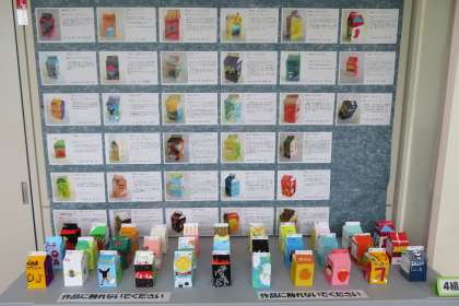 10月21日(土) 展示作品の一部を紹介します! 【2年・美術・牛乳パックデザイン】