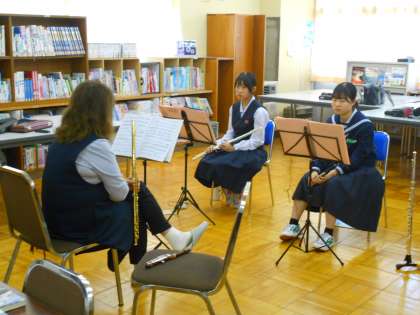 お迎えした講師の先生からパートやアンサンブルのレッスンを受けたり、個人練習をしたりしています。