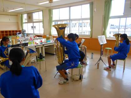 吹奏楽部がいろいろな教室を使って活動をしています。