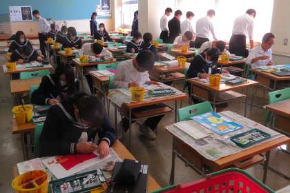 3年・美術・空想の世界 公開日 2023/10/25 更新日 2023/10/25 3学年 10月25日(水) 5限 3年3組の美術は、「空想の世界」を制作しています。 中盤に入り、着色するごとにドンドン雰囲気が変わっていきます。