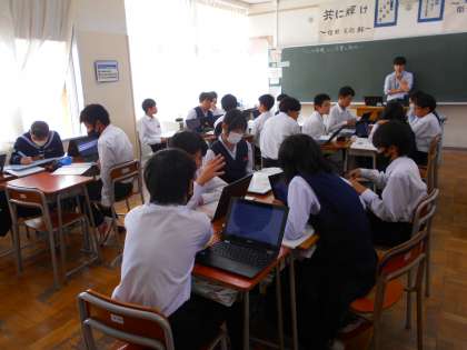 1年・授業風景・その1 公開日 2023/10/27 更新日 2023/10/27 1学年 10月27日(金) 4限 ノートを丁寧にまとめる生徒、歌う準備をする生徒、グループで話し合う生徒の姿が見られます。 (写真 上:1年1組 社会 「鎌倉時代にはどんな文化があっただろう」) (写真 中:1年2組 音楽「マイバラード」) (写真 下:1年3組 道徳「『どうせ無理』という言葉に負けない」)