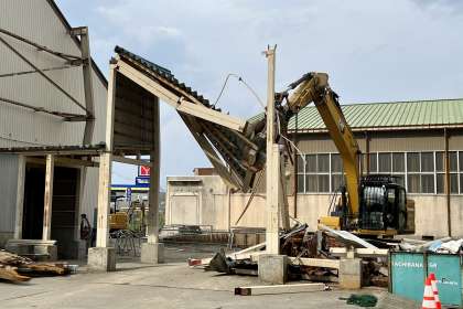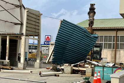 今日(10/27)の工事速報 公開日 2023/10/27 更新日 2023/10/27 山室中学校のページ 10月27日(金) 13:00 午後から、校舎(管理棟)と第2体育館をつないでいた渡り廊下の解体が始まりました。 鉄骨をハサミのように切り取る重機の迫力にビックリしました。