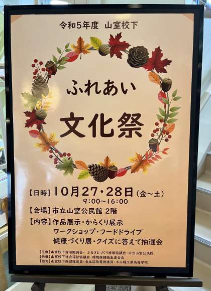 今日まで、山室公民館2階で「山室校下 ふれあい文化祭」が行われています。