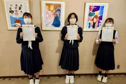 1年・美術部員が、ライオンズ世界平和ポスターコンテストに出品し、 グランテラス富山にて感謝状を授与されました。