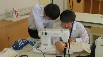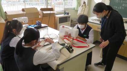 2年・家庭科・マイバッグづくり 公開日 2023/10/30 更新日 2023/10/30 2学年 10月30日(月) 3限 2年1組の家庭科は、被服室で、マイバッグづくりです。 今日の学習課題は、「縫い目がずれないように角を縫おう」です。 ミシンも少しずつ上手に扱えるようになりました!
