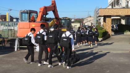 10月最終日の朝、生徒が元気に登校してきました。(写真)