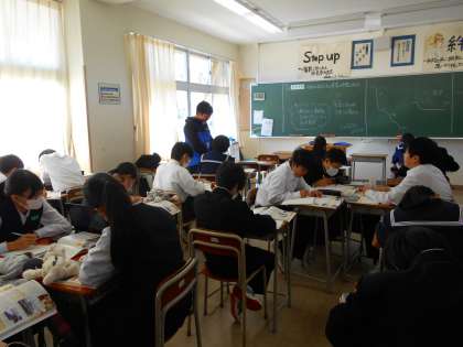 2年・授業風景 公開日 2023/10/31 更新日 2023/10/31 2学年 10月31日(火) 3限 自主的にノートをまとめたり、英文の構造についての説明を聞いたり、登場人物になりきって手紙を書いたりしているところです。 学習の秋——学びを積み重ねていきましょう!! (写真 上:2年2組 社会「中国四国地方の産業の特徴は何か」) (写真 中:2年3組 英語「Unit5」) (写真 下:2年4組 国語「字のない葉書」)