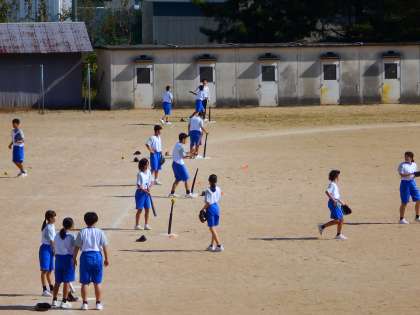 (写真 上:1年3組 体育「ソフトボール」)