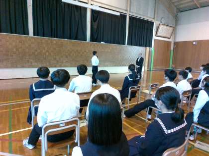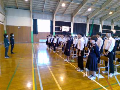2年・金沢校外学習・出発式 公開日 2023/11/01 更新日 2023/11/01 2学年 11月1日(水) 6限 明日の金沢校外学習に向けて、出発式を行いました。 実行委員が司会をし、校長先生に意気込みを発表したり、学年外の引率の先生方に挨拶をしたりしました。 大きな声で挨拶ができました。