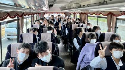 2年・金沢校外学習・その3 公開日 2023/11/02 更新日 2023/11/02 2学年 11月2日(木) 9:00 富山ICから高速道路に入ります。(写真:上) バスの中の様子です。(写真:下)