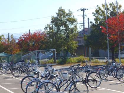 その一方で、グラウンド脇に生えている樹木は紅葉しており……。
