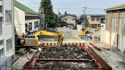 中庭は、掘ったり、削ったり、壊したり、埋めたり……となかなか工事の進捗状況が読めません。