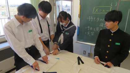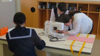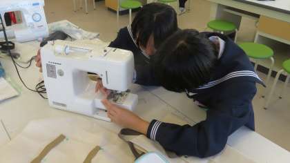2年5組の家庭科は、被服室で、マイバッグづくりです。