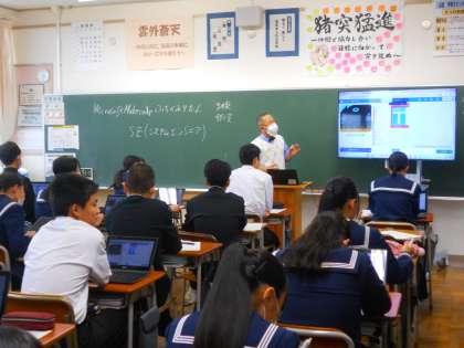 3年・授業風景・その1 公開日 2023/11/10 更新日 2023/11/10 3学年 11月10日(金) 4限 定期考査が近づいてきています。 いつもより集中して、先生の説明を聞いたり話し合ったりしています。 (写真 上:3年1組 社会 「地方公共団体の財政にはどのような課題があるか」) (写真 中:3年2組 数学「相似な図形」) (写真 下:3年3組 技術「プログラムによる機器制御」)