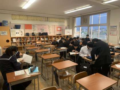 1年・勉強教え愛会 公開日 2023/11/13 更新日 2023/11/13 1学年 11月13日(月) 放課後 1学年協議会が企画した、放課後の「勉強教え愛会」の様子です。 事前に生徒から先生役を募集し、生徒同士で教え合う勉強会を企画しました。 写真は英語と数学の様子です。 今日は特に英語が大盛況でした! 今週5日間、5教科で実施しています。 1週間後に控えている「第3回 定期考査]に向けて頑張りましょう!