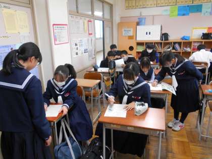 1年・勉強教え愛会・2日目 公開日 2023/11/14 更新日 2023/11/14 1学年 11月14日(火) 放課後 勉強教え愛会・2日目です。 昨日に引き続き、今日も5教科合わせて約70人の生徒が参加しました。 自分の苦手教科や頑張りたい教科を熱心に先生役の生徒に聞きながら頑張りました。 教えてもらって理解できた時の嬉しそうな表情や、たくさんの人に教えて自信に満ち溢れた表情を見ていると、今後の1年生の成長がとても楽しみです!