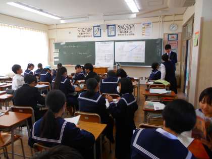 2年生は、定期考査に向けて問題を解いたり、友達と教え合ったりしています。
