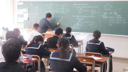 (写真 下:2年3組 英語「定期考査に向けて」)