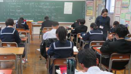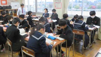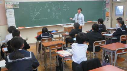 (写真 下:1年1組・少人数 数学「比例と反比例」)
