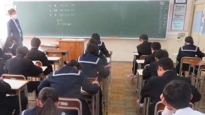 1年・第3回 定期考査・3日目 公開日 2023/11/22 更新日 2023/11/22 1学年 11月22日(火) 3限 英語 「第3回 定期考査」3日目、3限、最終教科です。 (1限:理科、2限:技・家、3限:英語) (写真 上:1年1組 中:1年3組 下:1年5組)