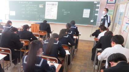 3年・第3回 定期考査・3日目 公開日 2023/11/22 更新日 2023/11/22 3学年 11月22日(火) 3限 数学 「第3回 定期考査」3日目、3限、最終教科です。 (1限:美術、2限:音楽、3限:数学) (写真 上:3年1組 中:3年3組 下:3年5組)