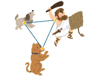 ▼オリオン座のベテルギウス、おおいぬ座のシリウス