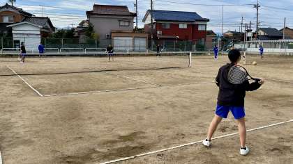 外では、女子ソフトテニス部が真っ先に活動を始めました。