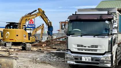 今日(11/23)の工事速報 公開日 2023/11/23 更新日 2023/11/23 山室中学校のページ 11月23日(木) 9:00 祝日を返上して、今日も工事が進んでいます。 第2体育館の解体ででた瓦礫をどんどんトラックに積み込んでいます。