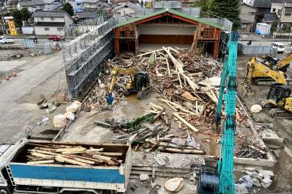 第2体育館の解体工事も中庭の工事も終盤に入ってきました。