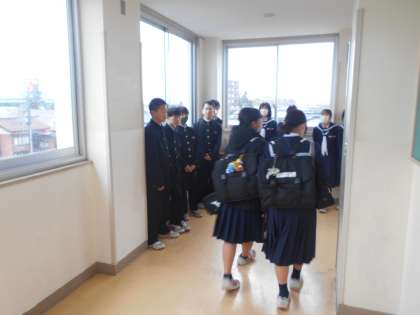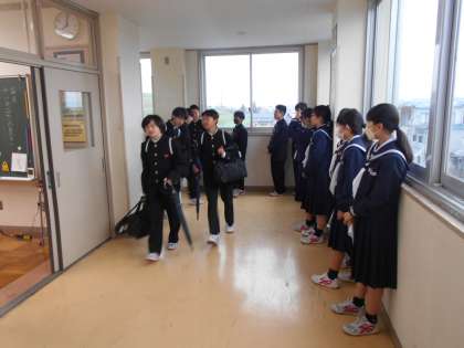 1年・あいさつ運動 公開日 2023/11/28 更新日 2023/11/28 1学年 11月28日(火) 7:50 1学年協議会は、昨日から「あいさつ運動」をしています。 朝から気持ちのよい挨拶が交わされていました。